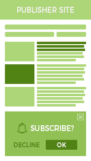 "Mobile Push Ad" is a native mobile window that pops up on a users device. A desktop or mobile device user receives a message when they get online. Compatible with most push platforms.